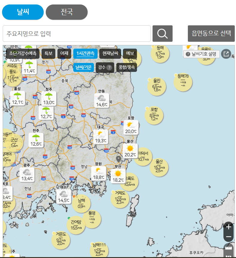 - 실시간 날씨 정보 제공-기상청 자료 제공