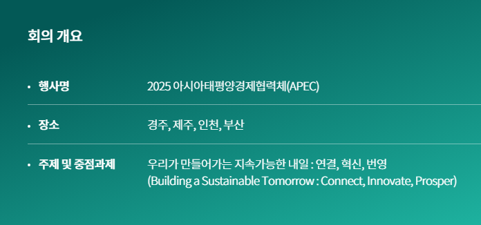 2025년 경주 APEC 정상회의는 단순한 외교 행사를 넘어 경주를 세계에 알리고, 한국이 아시아태평양 경제 협력의 중심으로 도약하는 전환점이 될 것입니다. 다음 포스팅에서는 경주가 APEC 개최지로 선정된 이유와 의미에 대해 더욱 깊이 있게 다뤄보겠습니다.