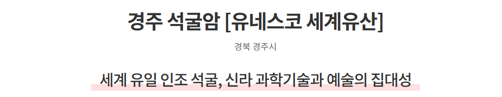 2 | 석굴암 | 명상·영성 체험, 기념 촬영지로 적합 |